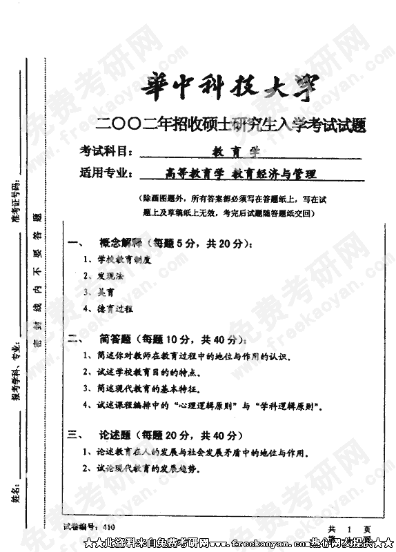华中科技大学2002年半岛在线注册真题-教育学