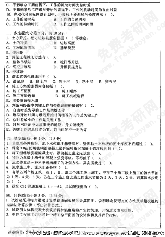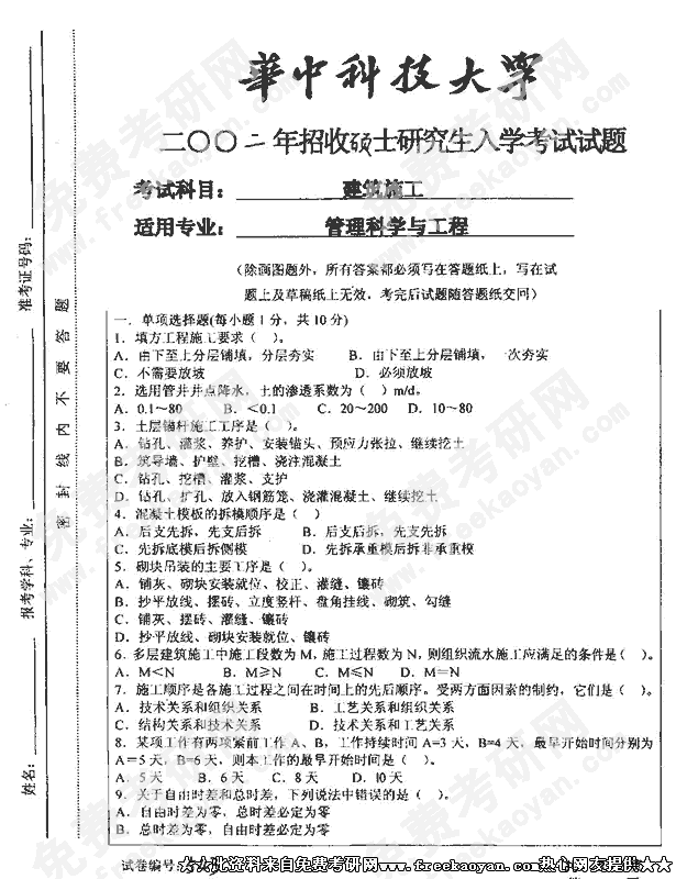华中科技大学2002年半岛在线注册真题-建筑施工