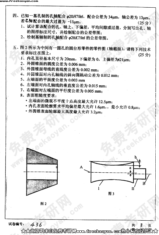 华中科技大学2003年半岛在线注册真题-互换性与技术测量