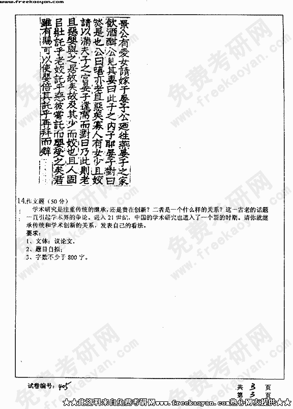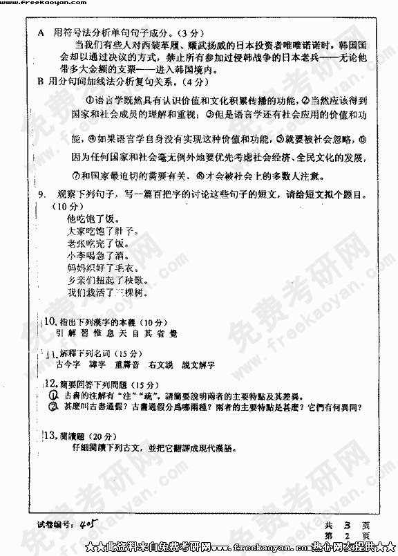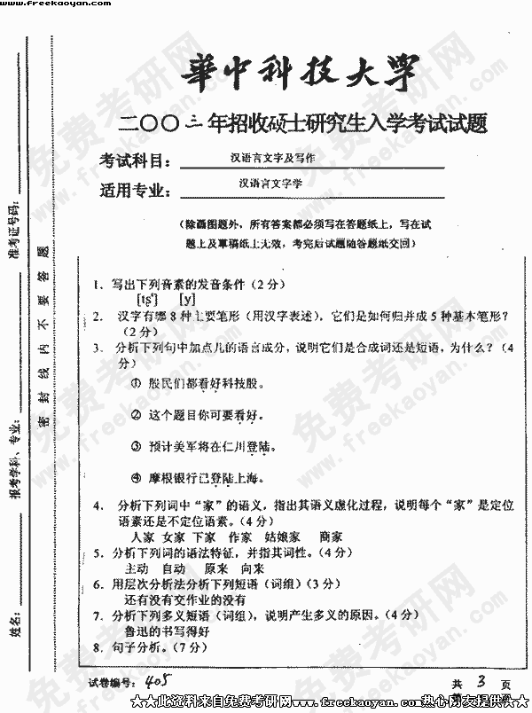 华中科技大学2003年半岛在线注册真题-汉语言文字及写作
