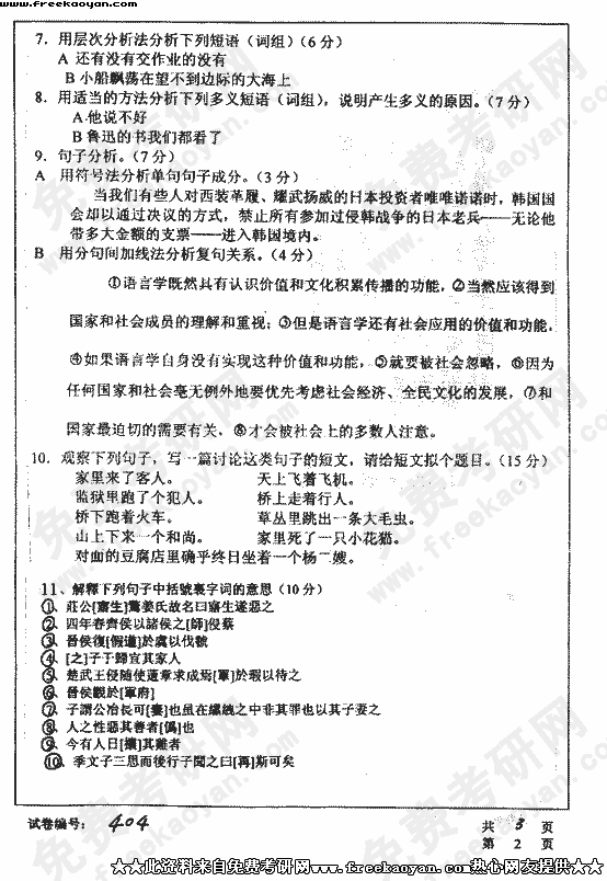 华中科技大学2003年半岛在线注册真题-基础语言学及写作