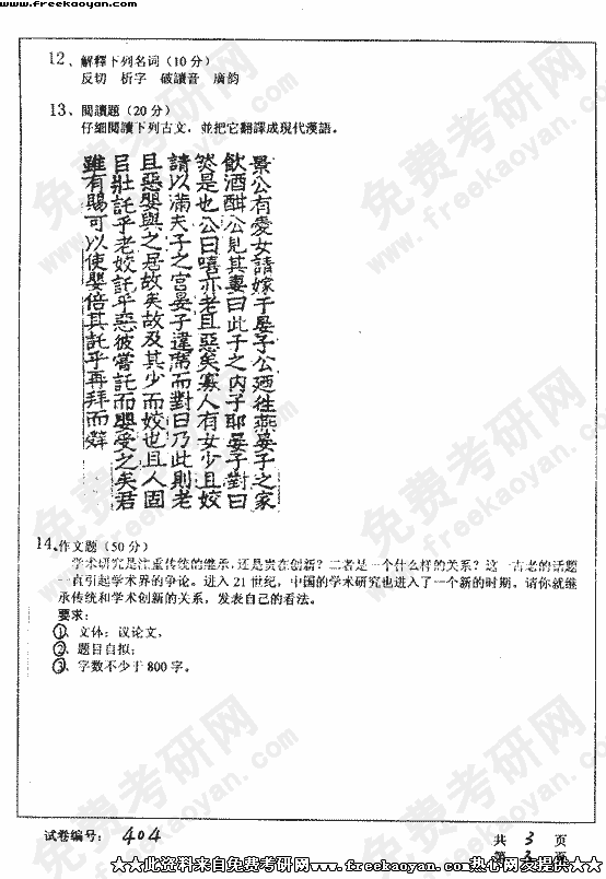 华中科技大学2003年半岛在线注册真题-汉语言文字及写作