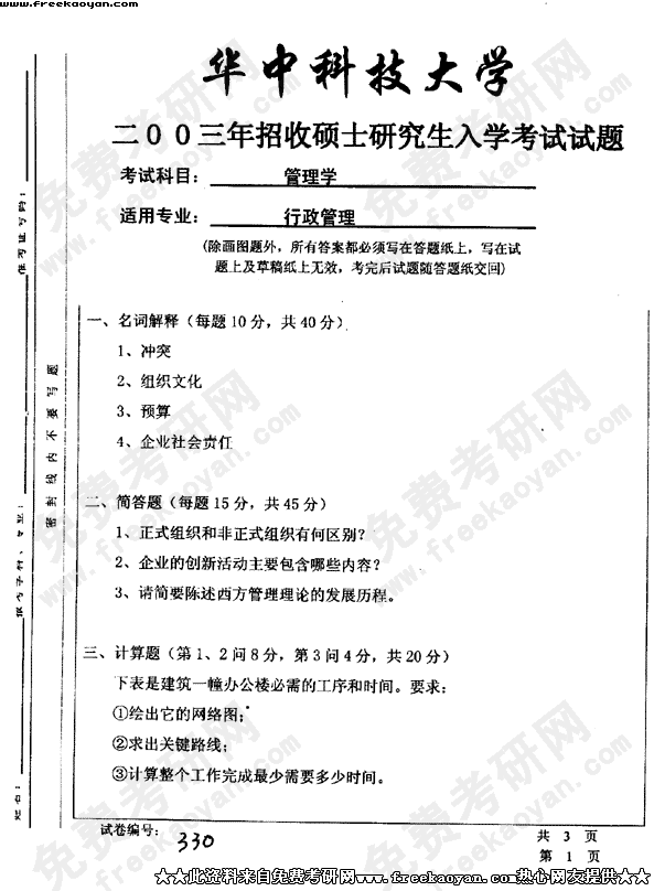 华中科技大学2003年半岛在线注册真题-汉语言及写作