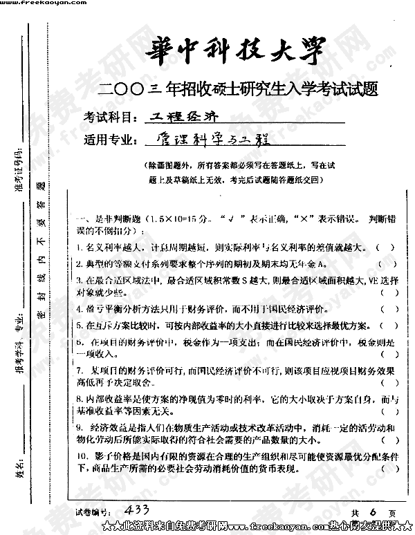 华中科技大学2003年半岛在线注册真题-互换性与技术测量
