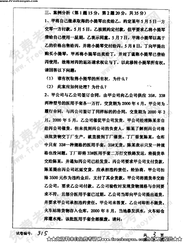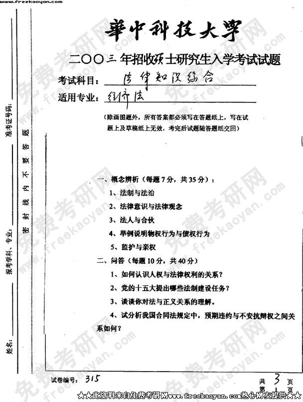 华中科技大学2003年半岛在线注册真题-法律知识综合