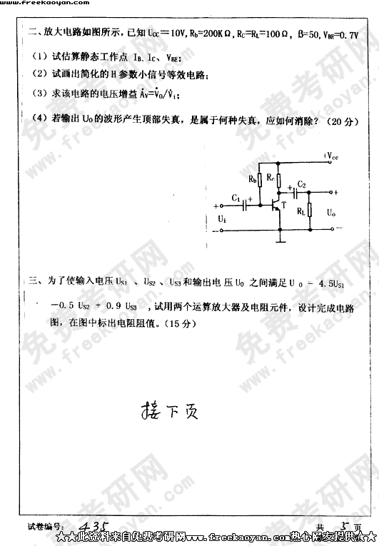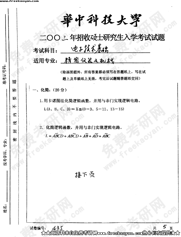 华中科技大学2003年半岛在线注册真题-电子技术基础c