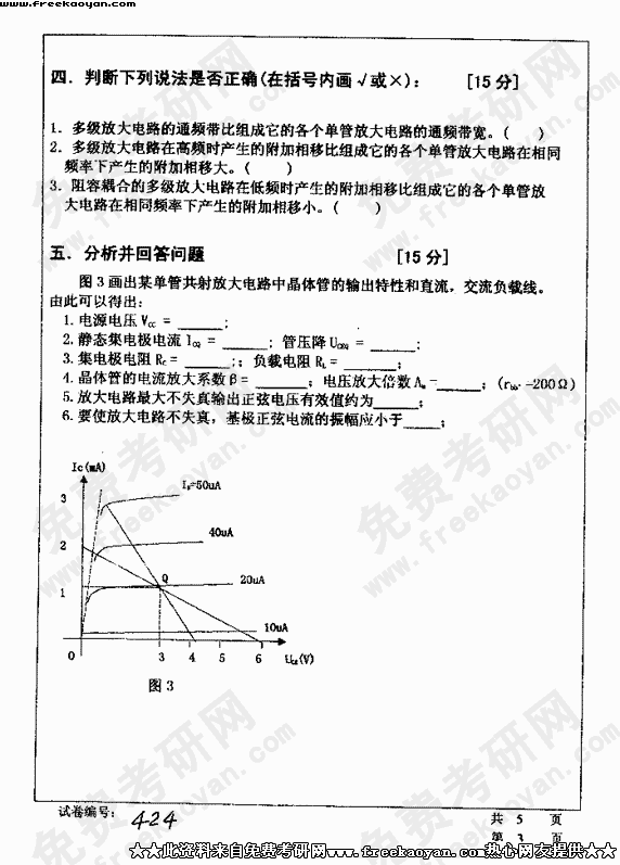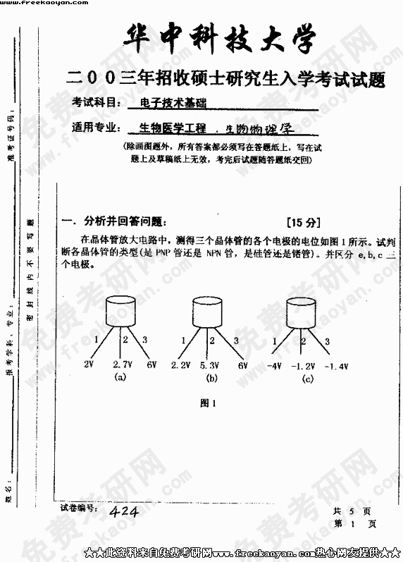 华中科技大学2003年半岛在线注册真题-电子技术基础c