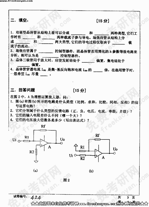 华中科技大学2003年半岛在线注册真题-电子技术基础