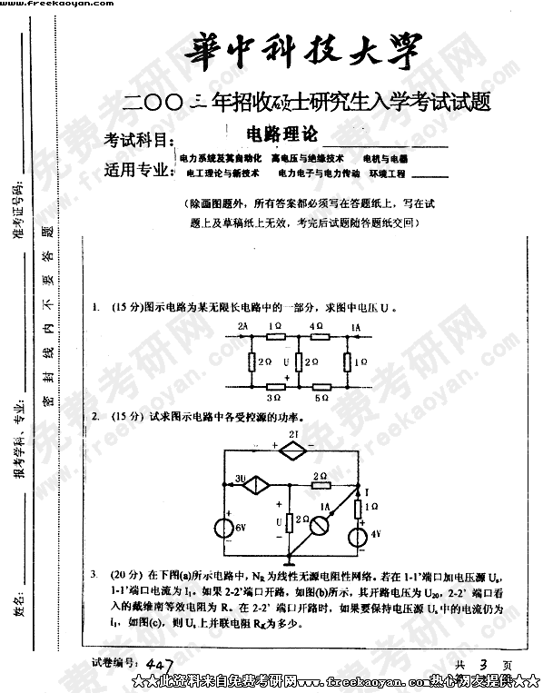 华中科技大学2003年半岛在线注册真题-电子技术基础