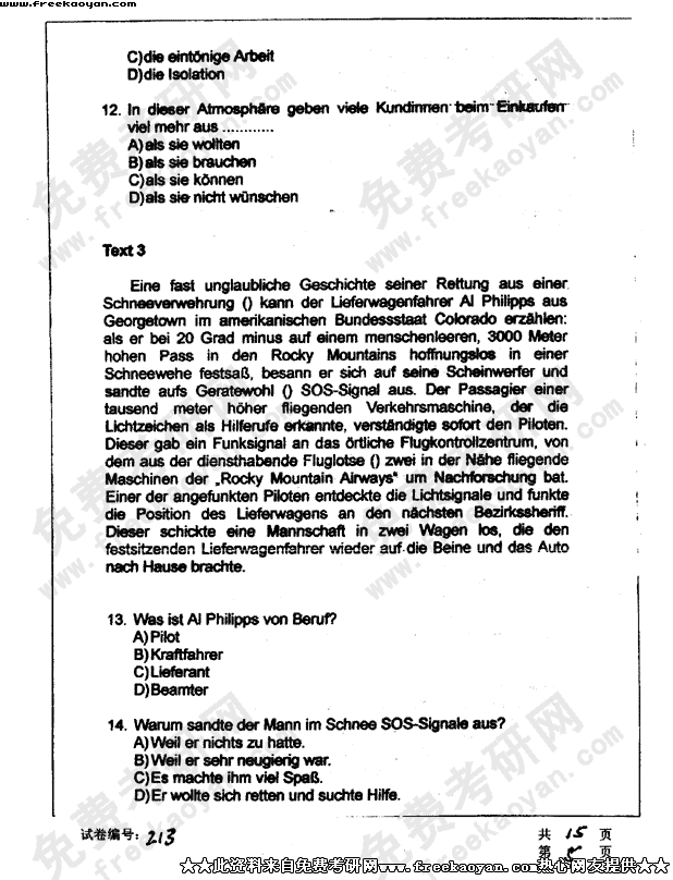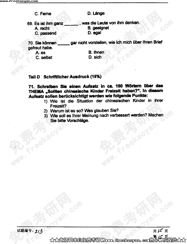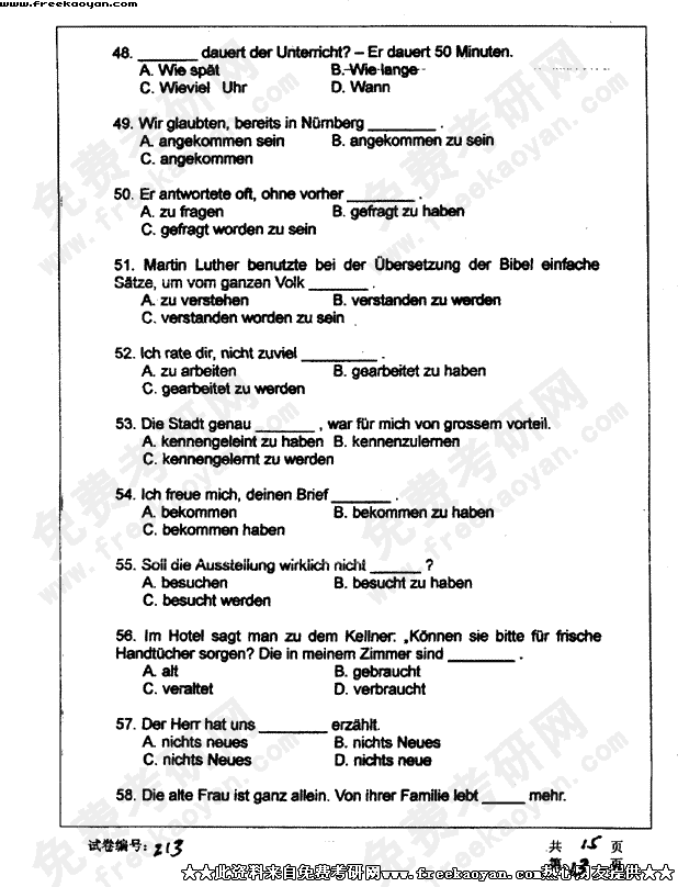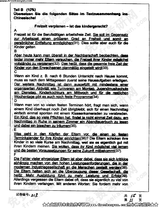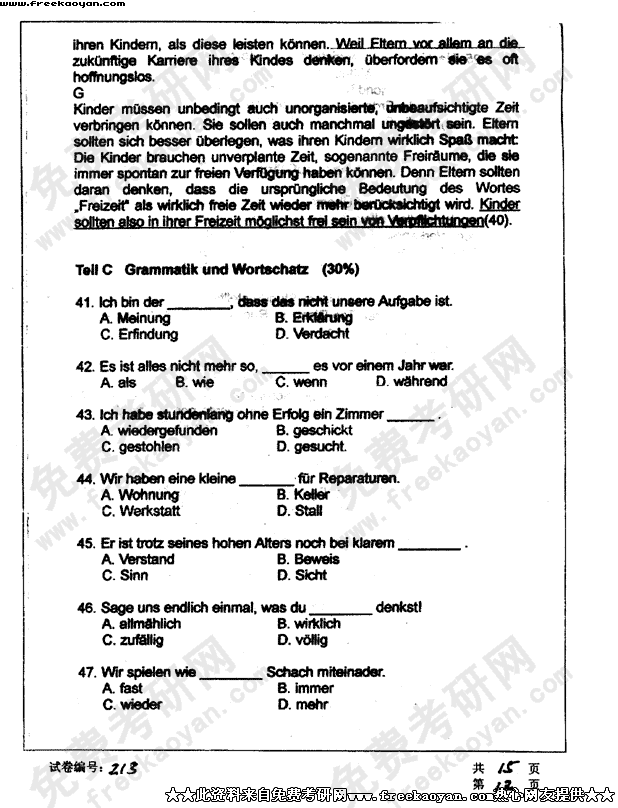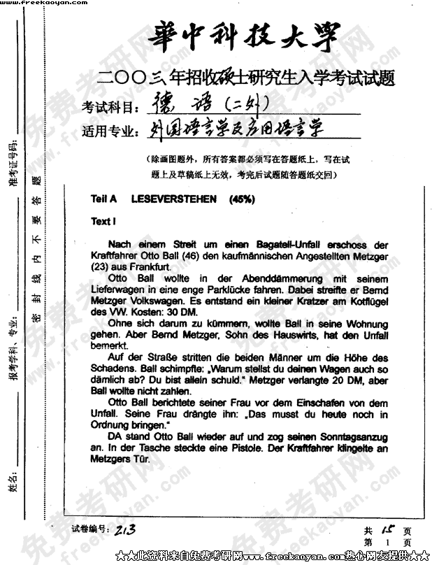 华中科技大学2003年半岛在线注册真题-德语