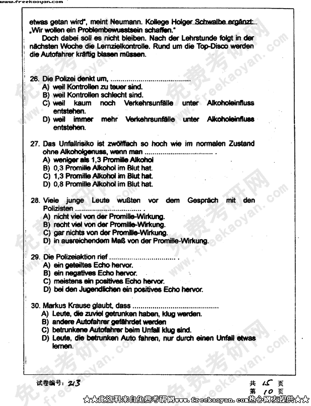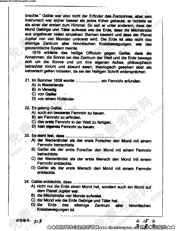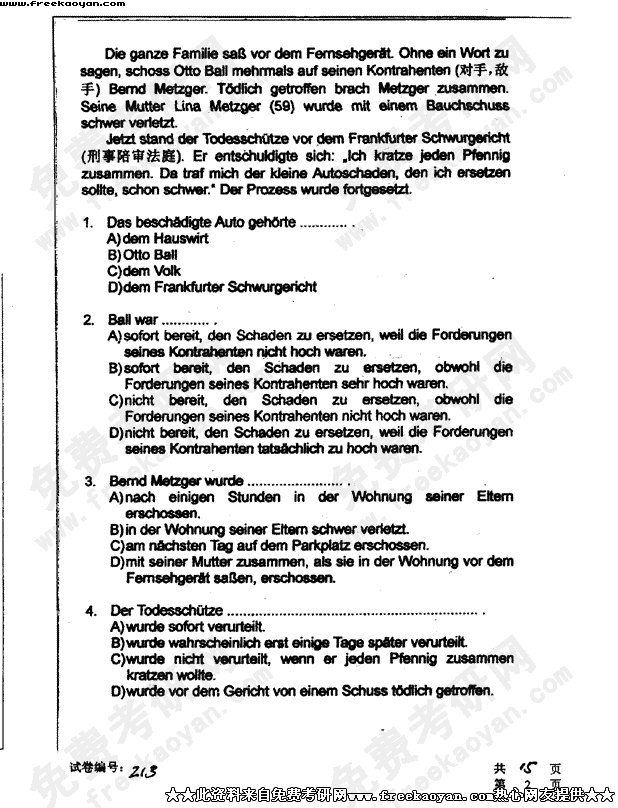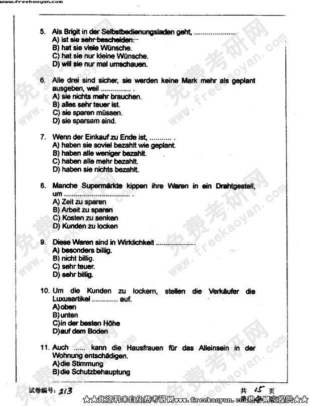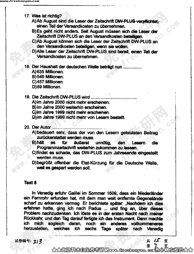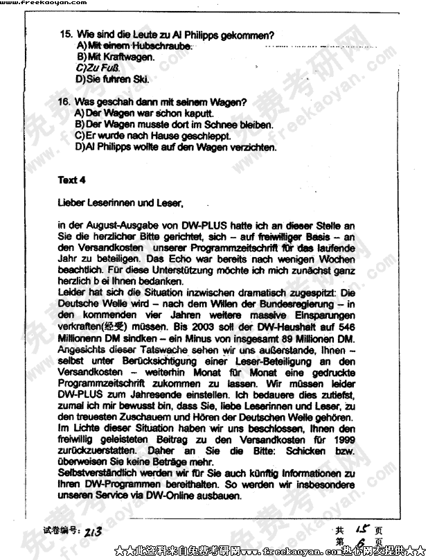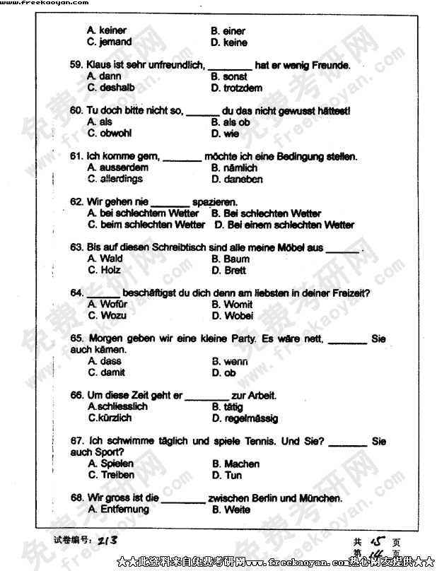 华中科技大学2003年半岛在线注册真题-德语