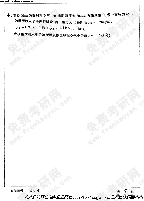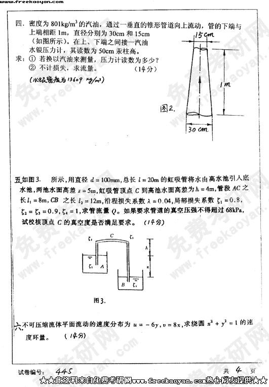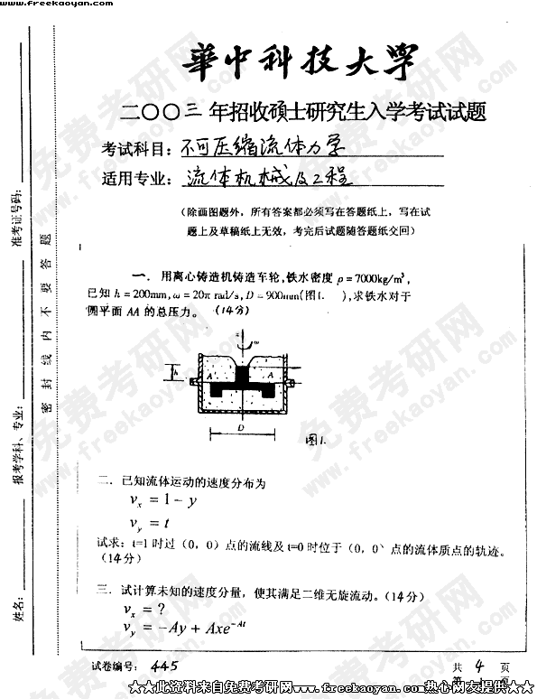 华中科技大学2003年半岛在线注册真题-不可压缩流体力学