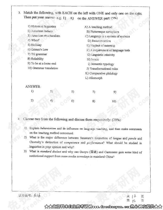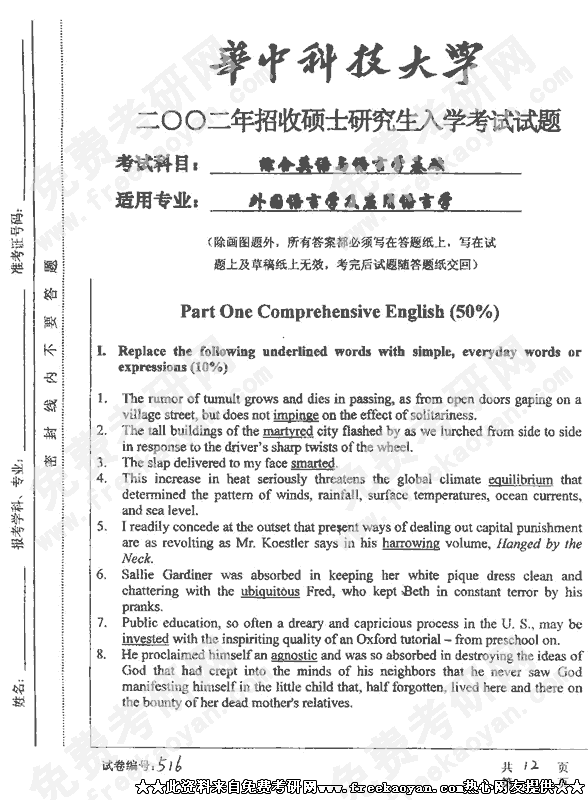 华中科技大学2002年半岛在线注册真题-综合英语与语言学基础