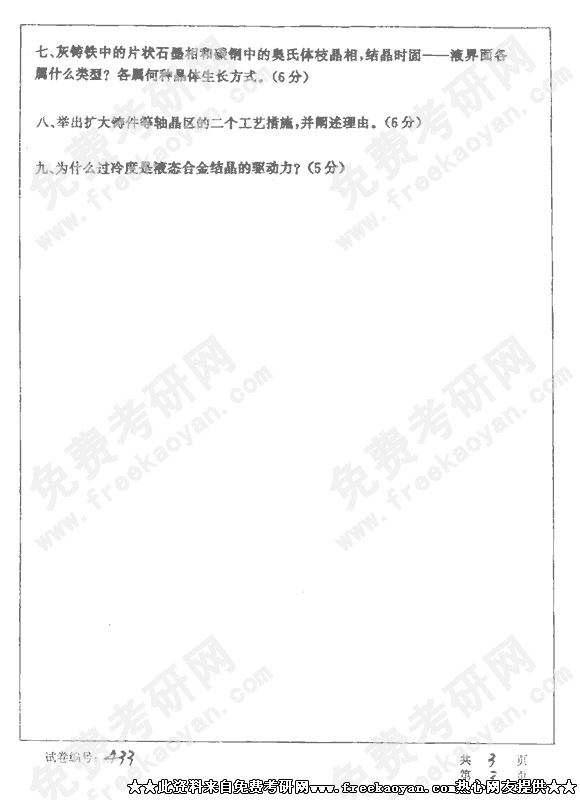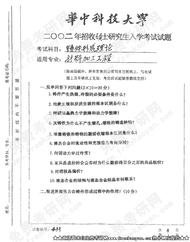 华中科技大学2002年半岛在线注册真题-铸件形成理论