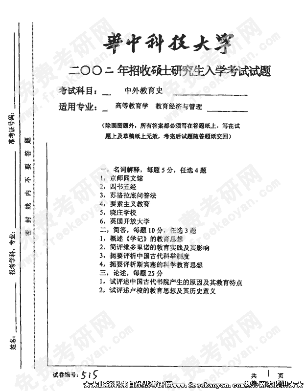 相关话题/半岛在线注册真题 华中科技大学 教育史 中外