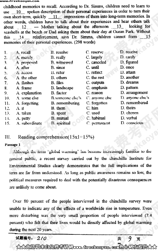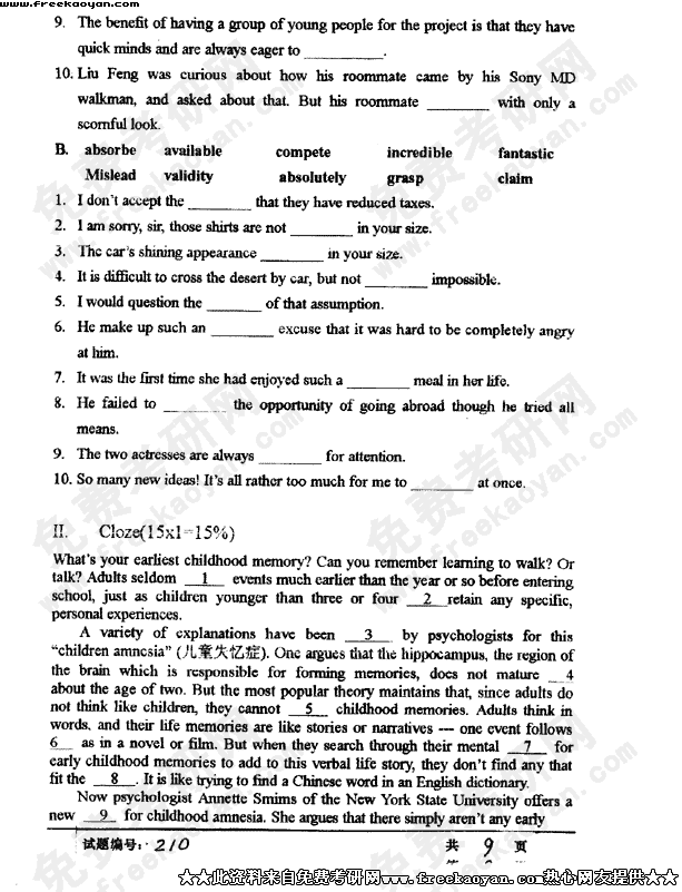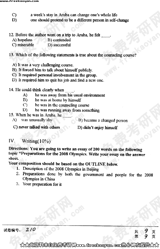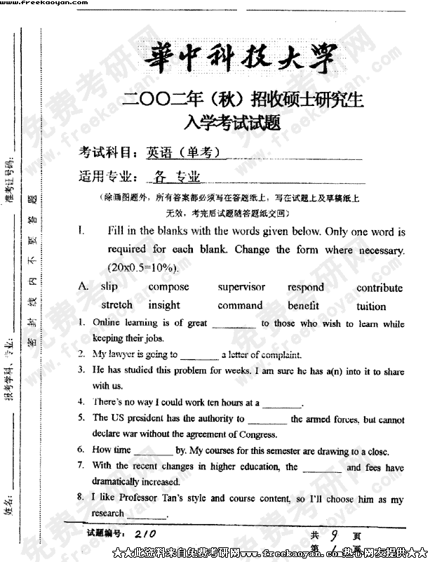 华中科技大学2003年半岛在线注册真题-英语(单考)