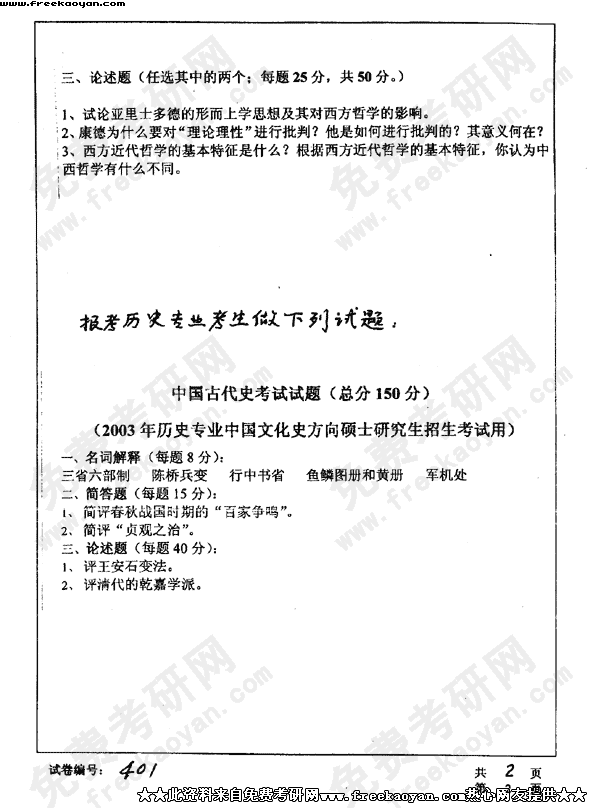 华中科技大学2002年半岛在线注册真题-中国文化史