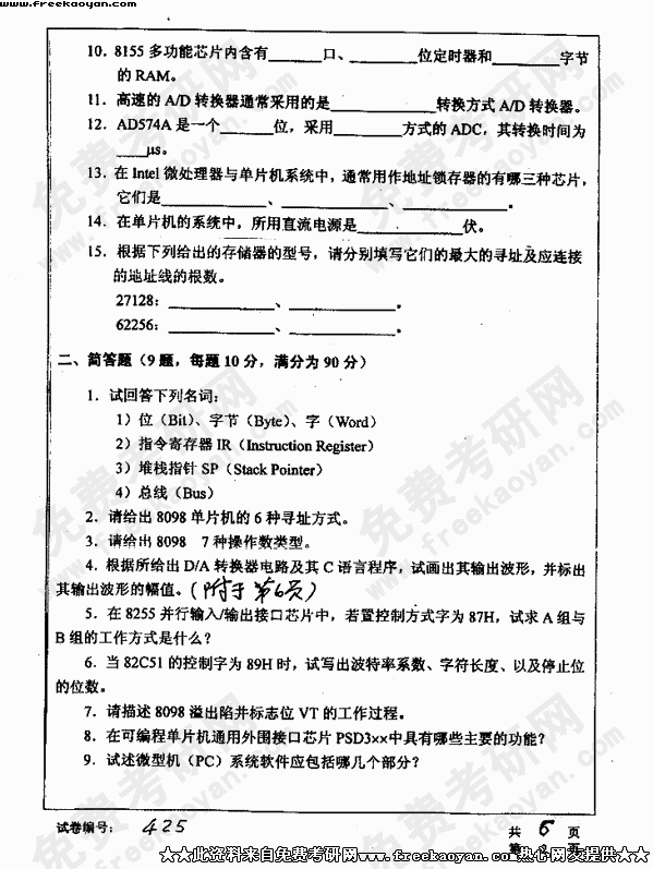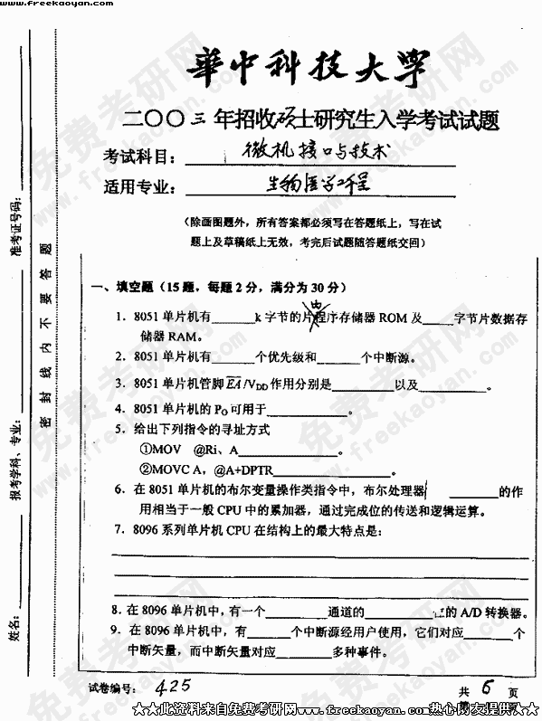 华中科技大学2003年半岛在线注册真题-微机接口与技术