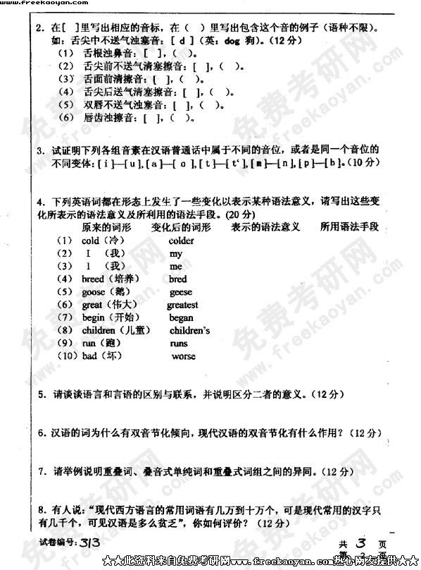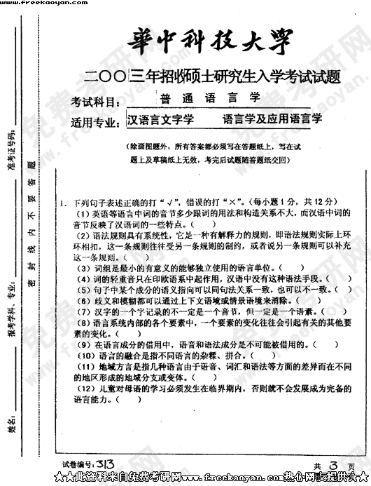 华中科技大学2003年半岛在线注册真题-普通语言学