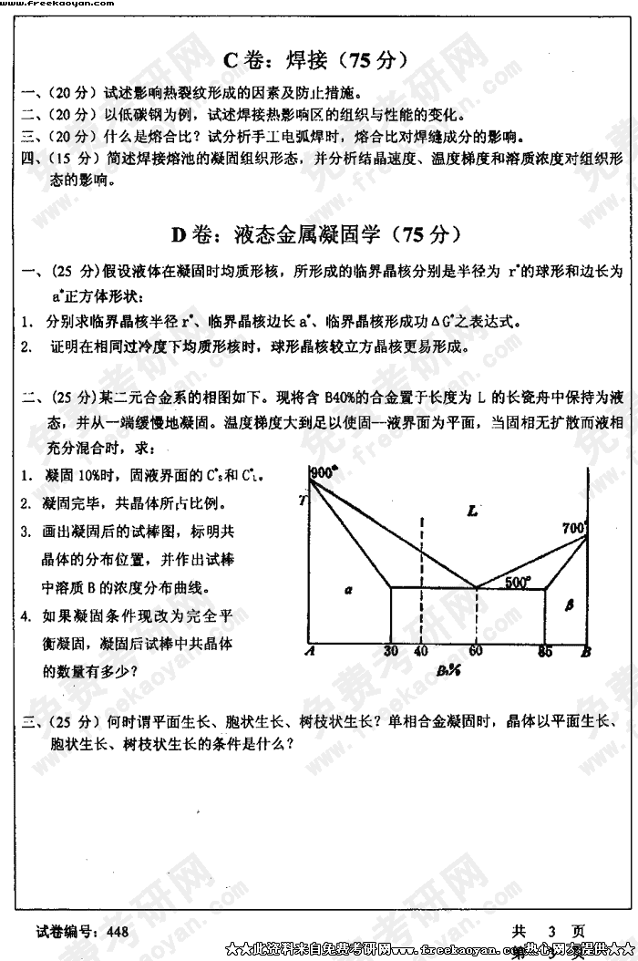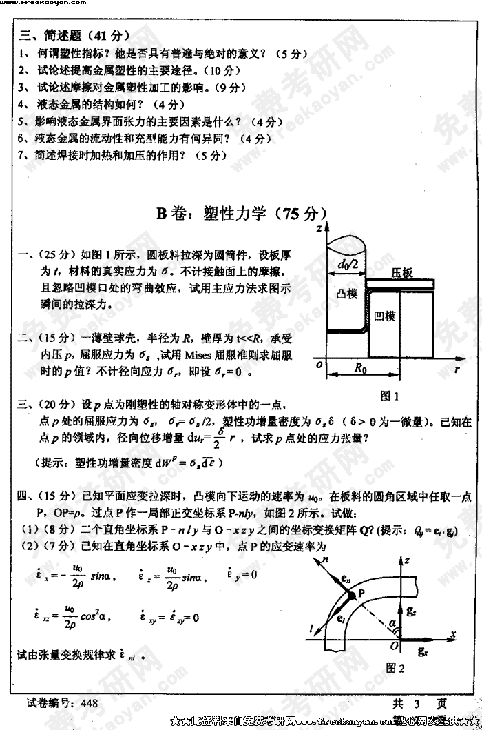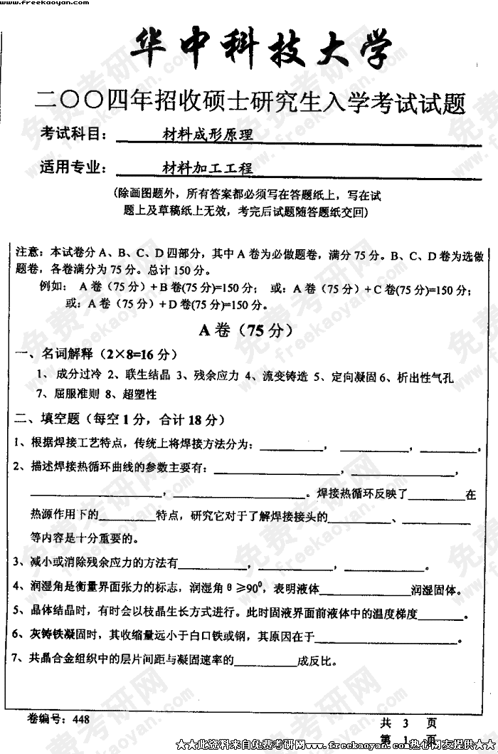 华中科技大学2004年半岛在线注册真题-材料成形原理