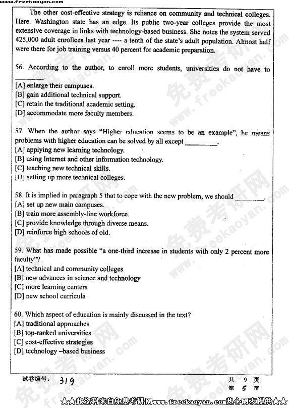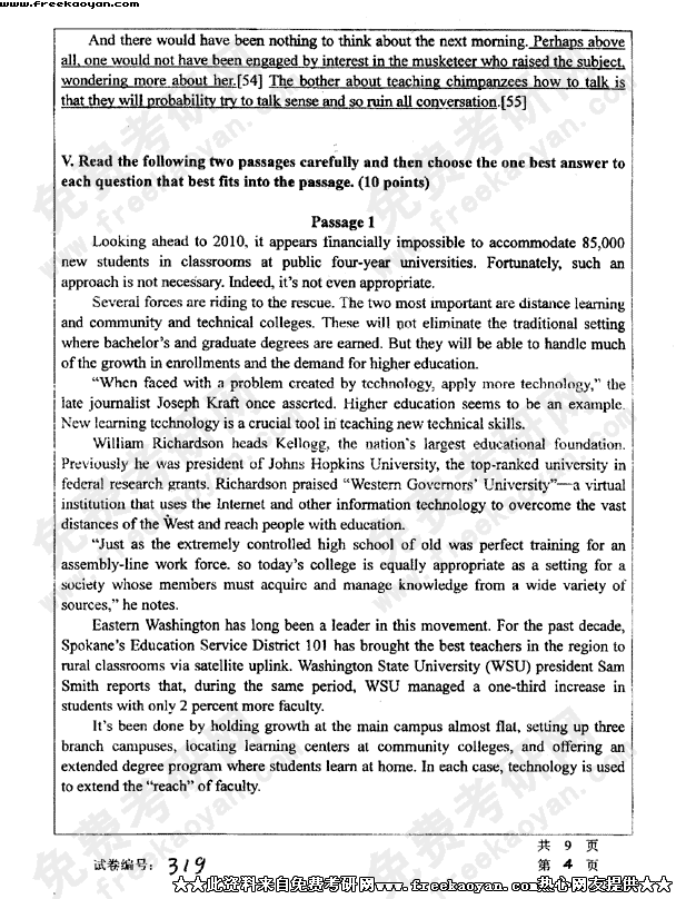 华中科技大学2004年半岛在线注册真题-MBA入学联考英语试题
