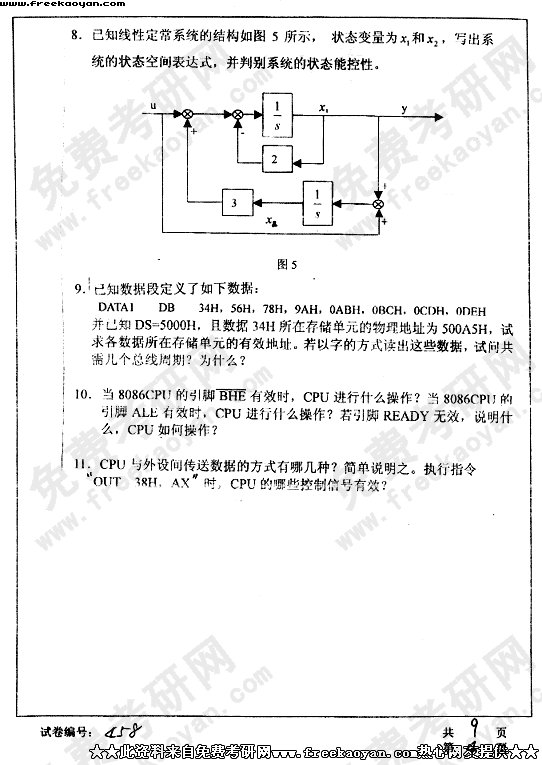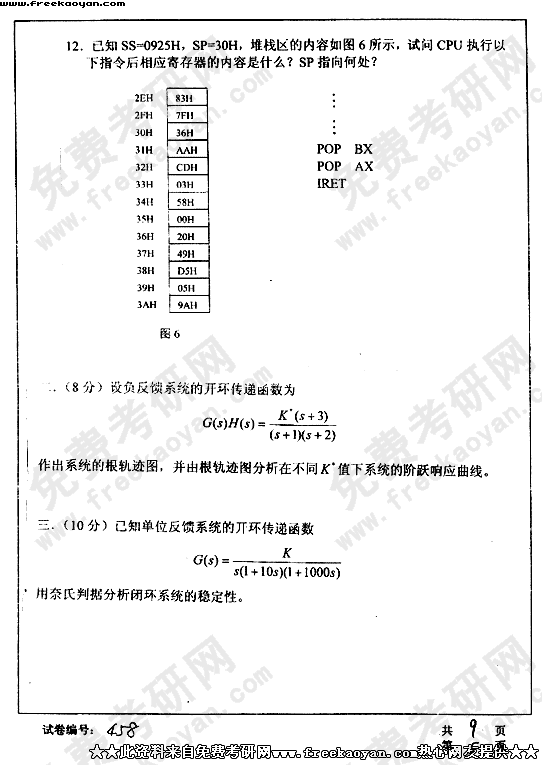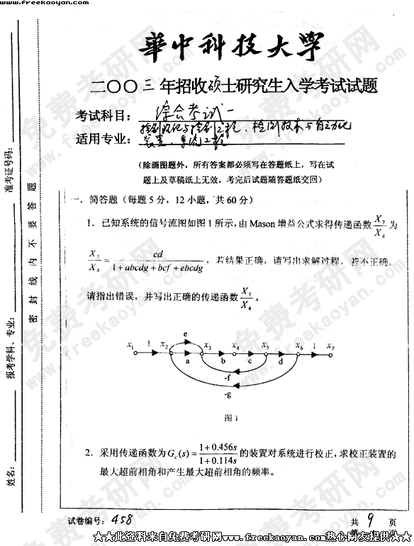 华中科技大学2003年半岛在线注册真题-综合考试一(控制理论与控制工程、检测技术与自动化装置、系统工程)