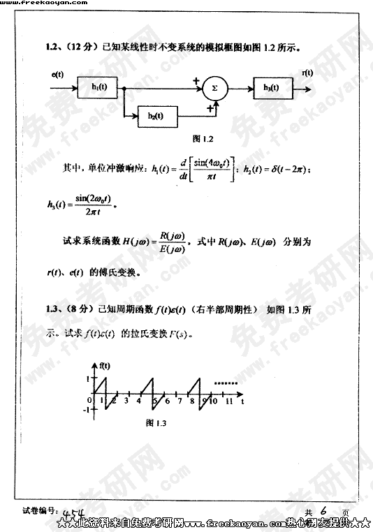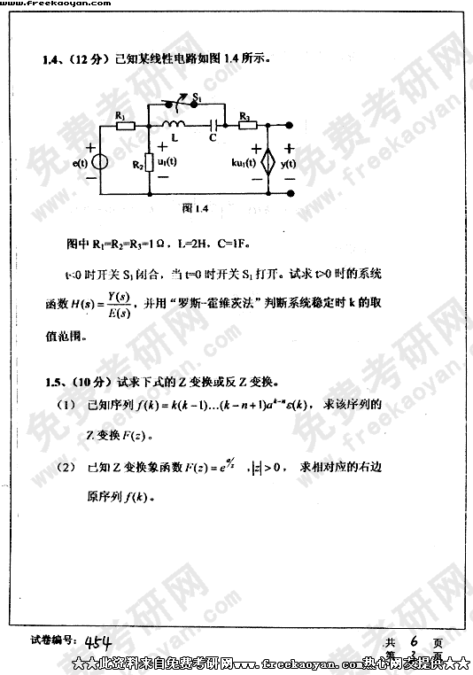 华中科技大学2003年半岛在线注册真题-综合考试三(控制系各专业)