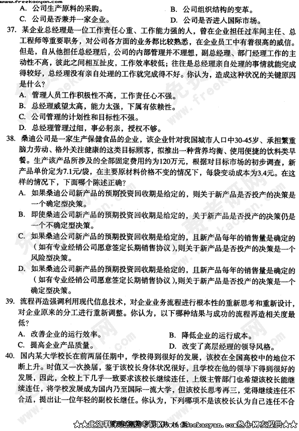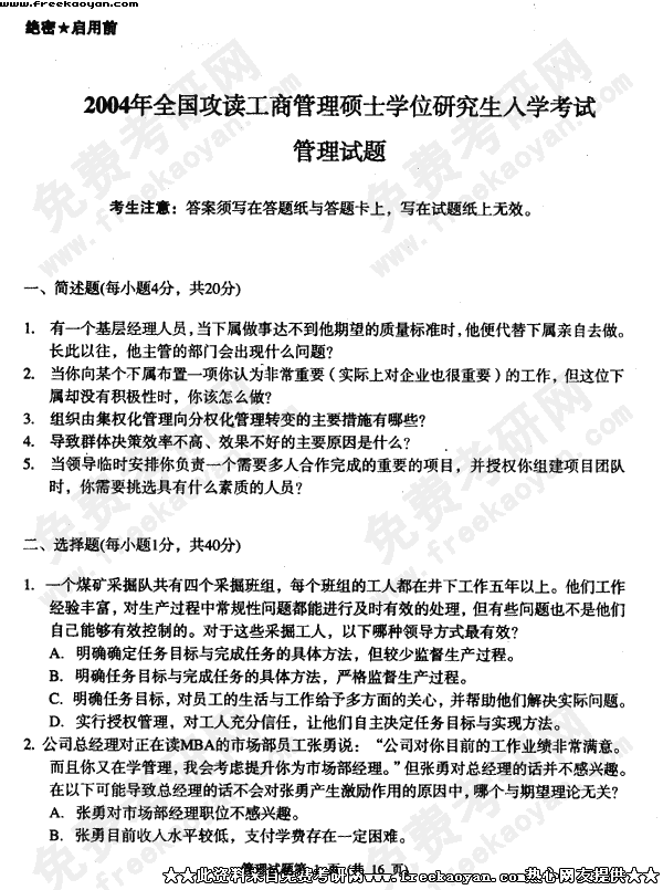 华中科技大学2004年半岛在线注册真题-工商管理硕士管理试题