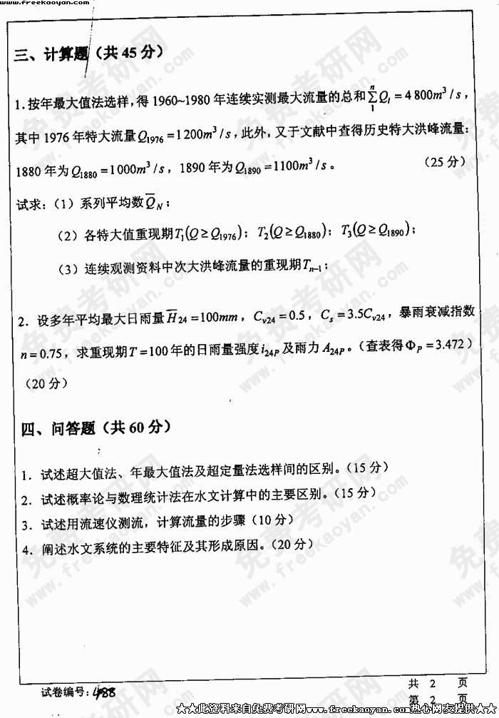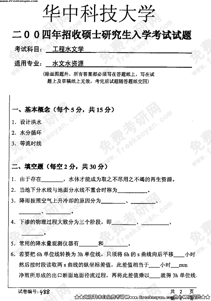 华中科技大学2004年半岛在线注册真题-工程水文学