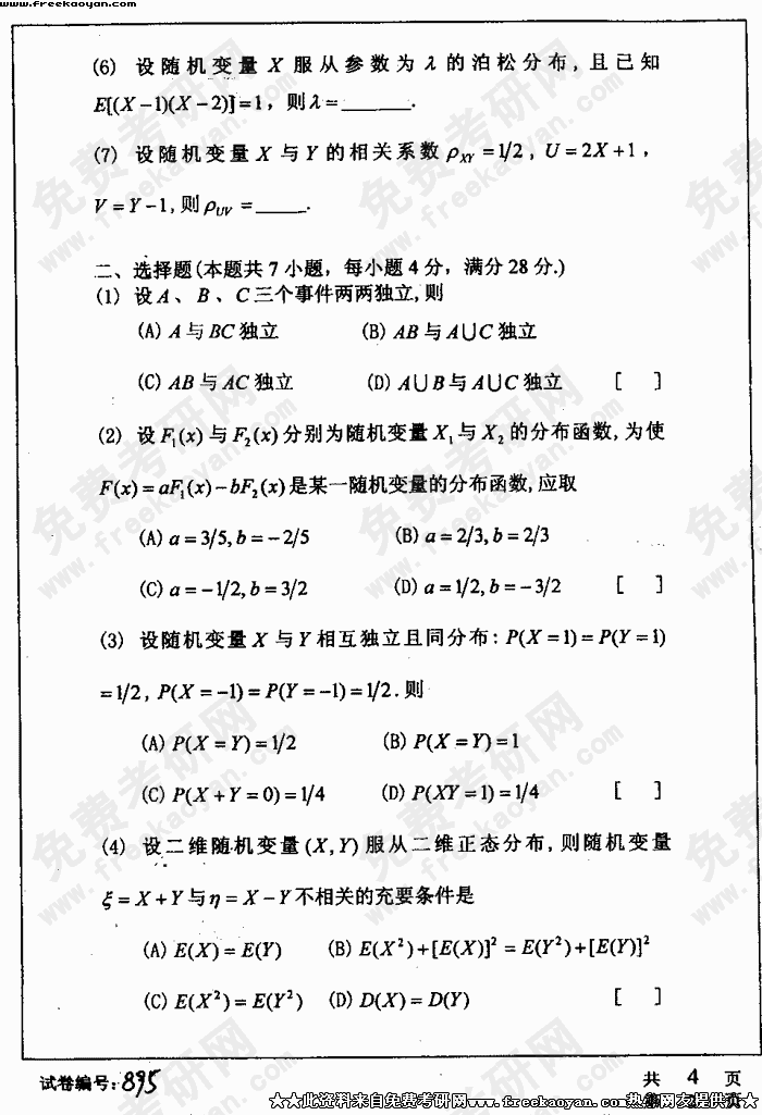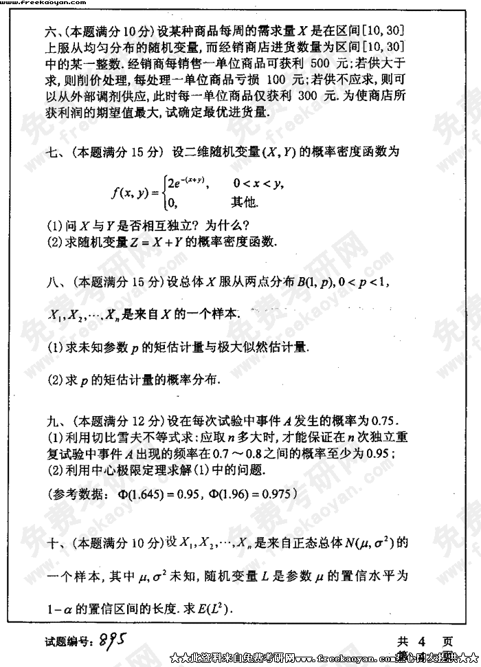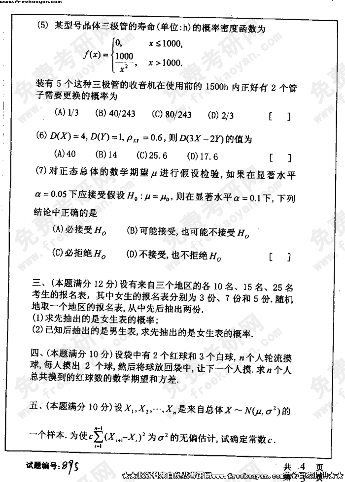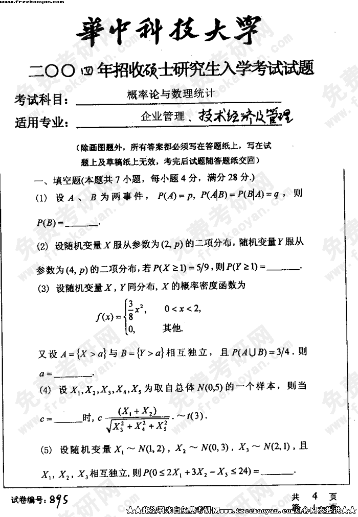 华中科技大学2004年半岛在线注册真题-概率论与数理统计