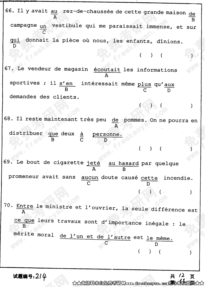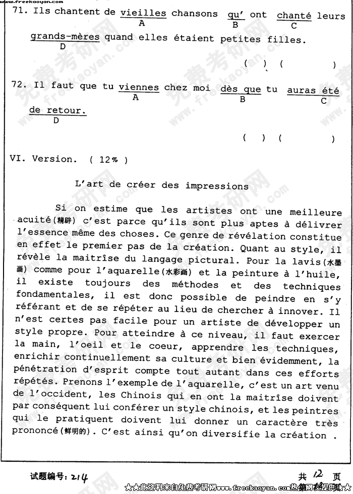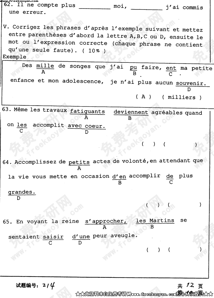 华中科技大学2004年半岛在线注册真题-法语试题