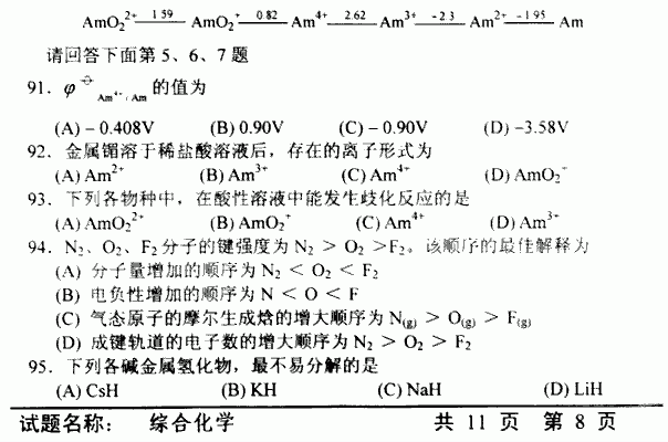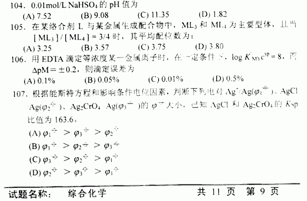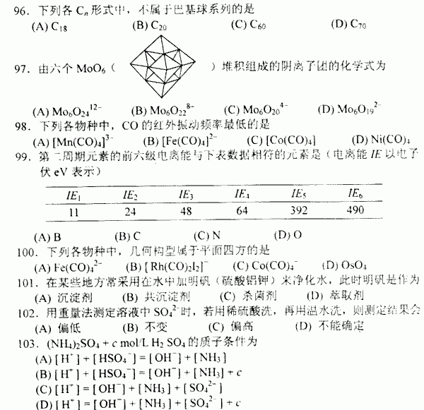 中国科学技术大学2004年半岛在线注册真题-综合化学第二部分