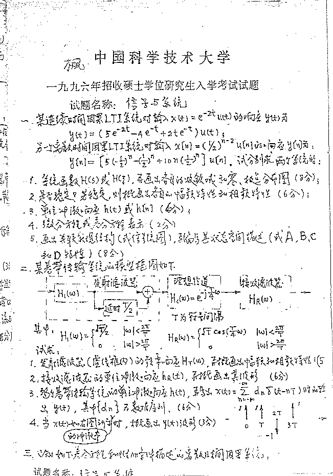 中国科学技术大学1996年半岛在线注册真题-信号与系统