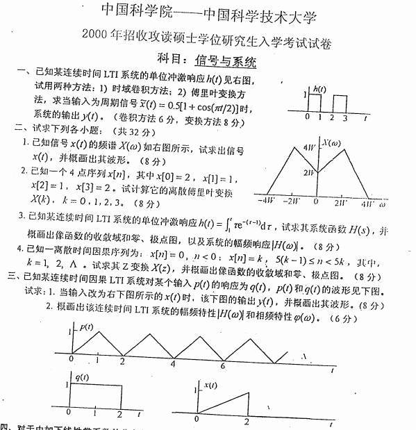 中国科学技术大学2000年半岛在线注册真题-信号与系统