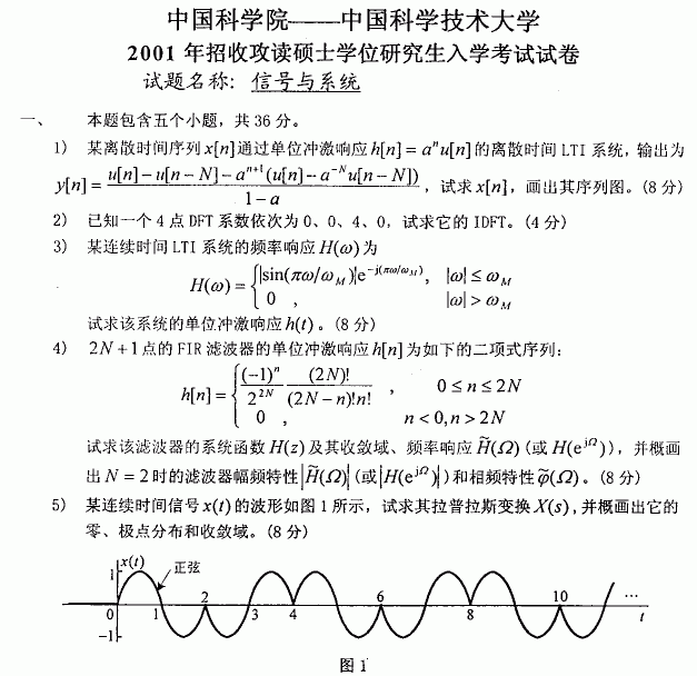 中国科学技术大学2001年半岛在线注册真题-信号与系统