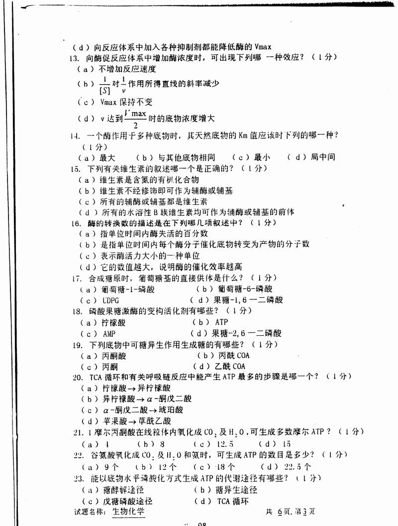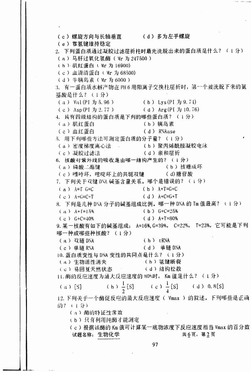 中国科学技术大学1999年半岛在线注册真题-生物化学