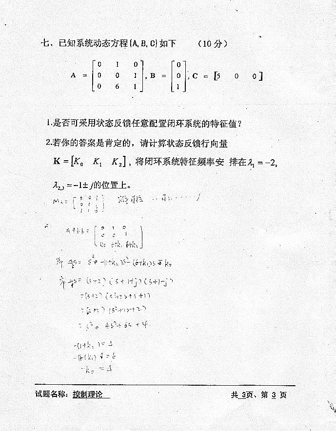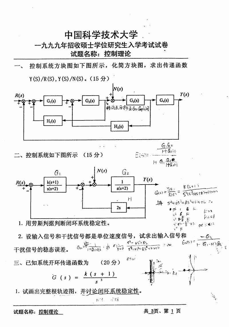 中国科学技术大学1999年半岛在线注册真题-控制理论