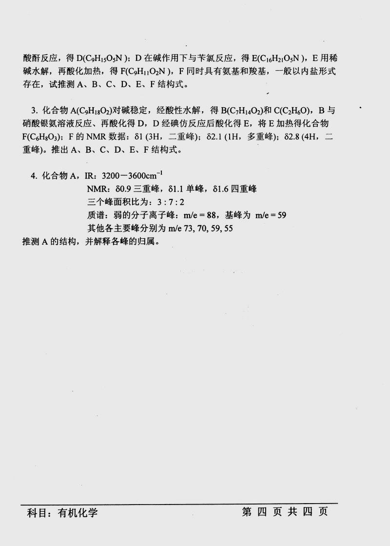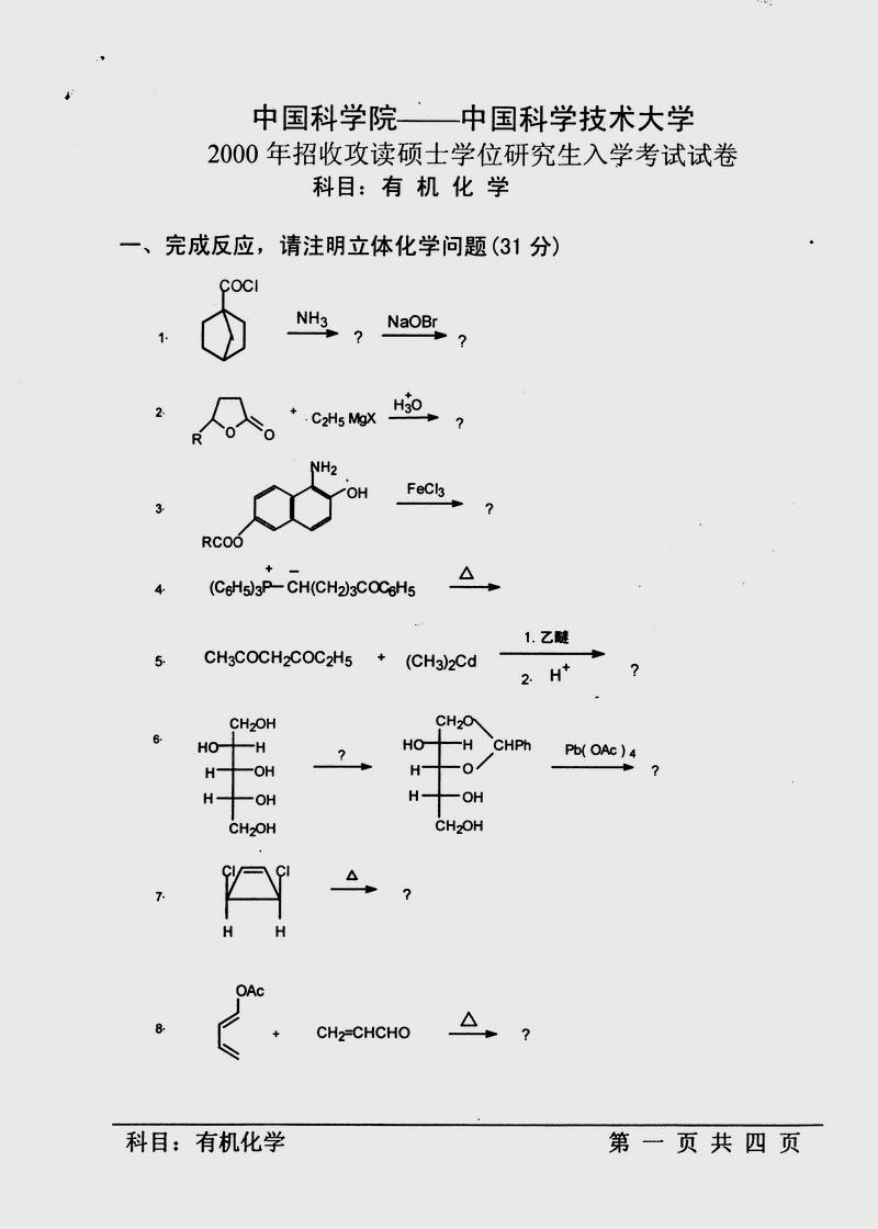 中国科学技术大学2000年半岛在线注册真题-有机化学