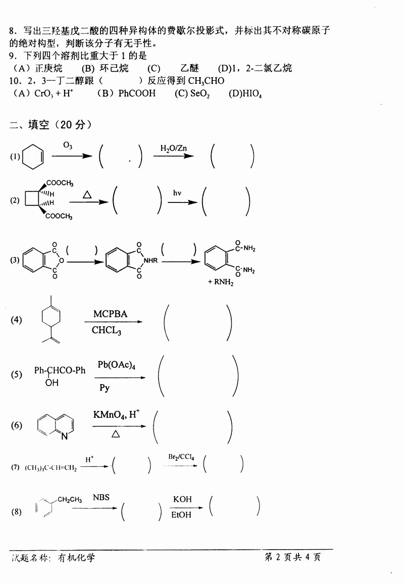 专业课半岛在线注册经验 本站小编 FreeKaoyan 2018-01-22中国科学技术大学2000年半岛在线注册真题-有机化学