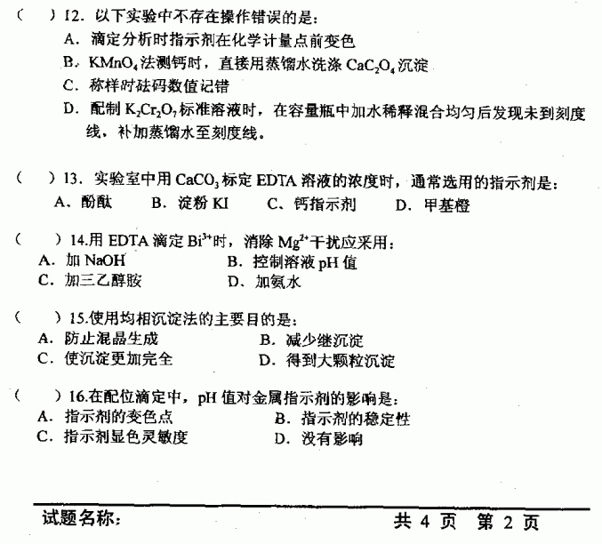 中国科学技术大学2002年半岛在线注册真题-分析化学B
