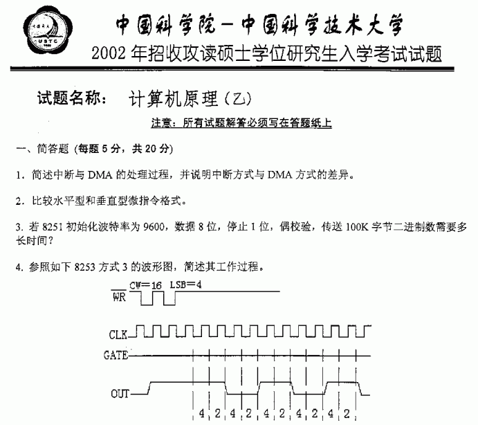 中国科学技术大学2002年半岛在线注册真题-计算机原理(乙)