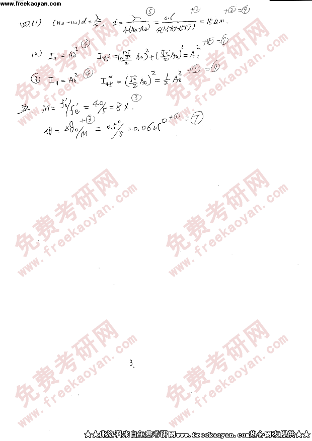 中国科学技术大学2003年半岛在线注册真题-光学答案