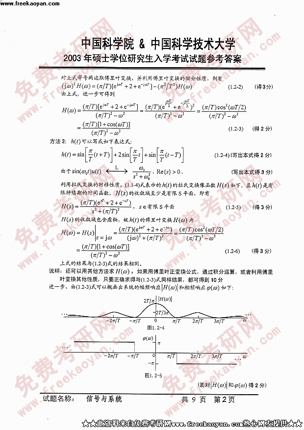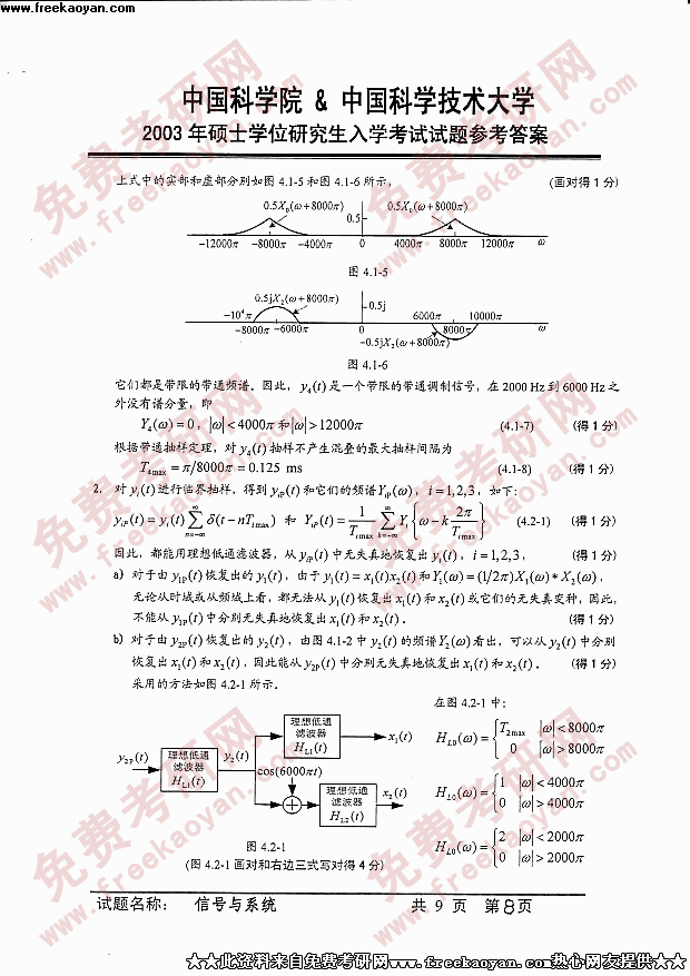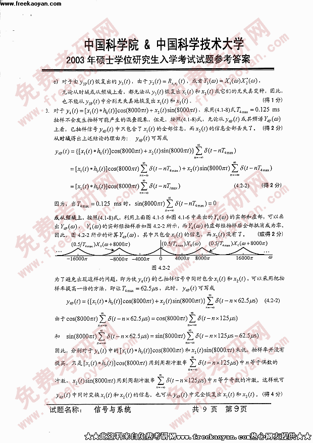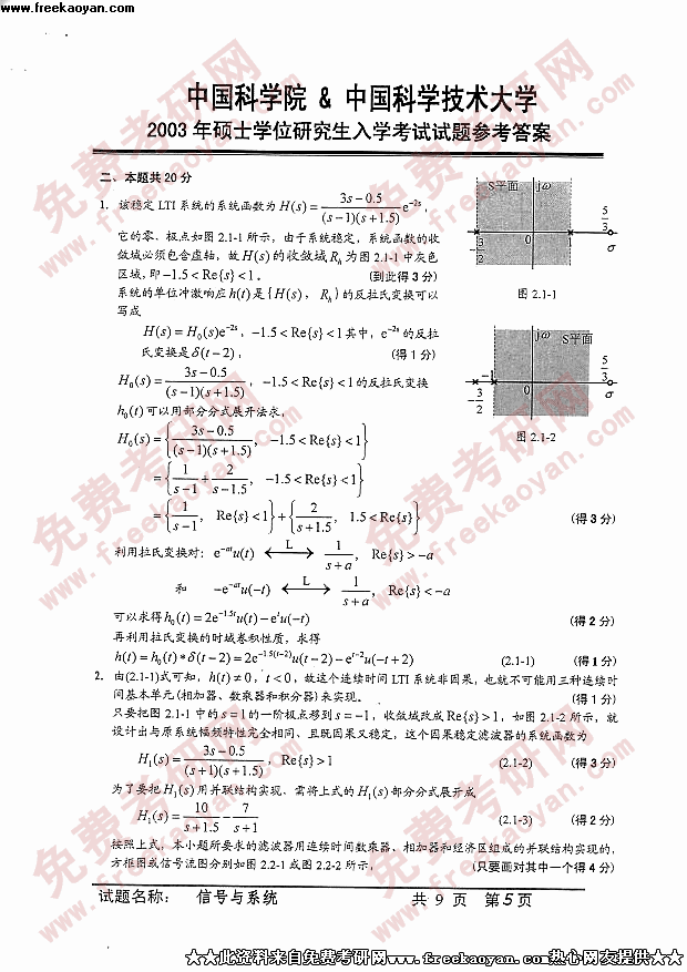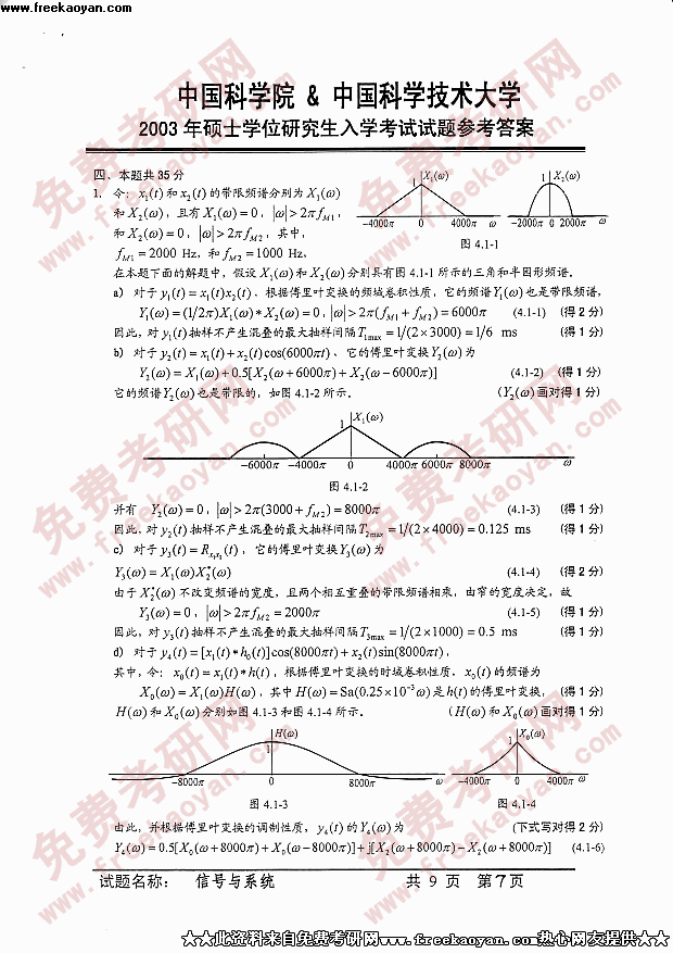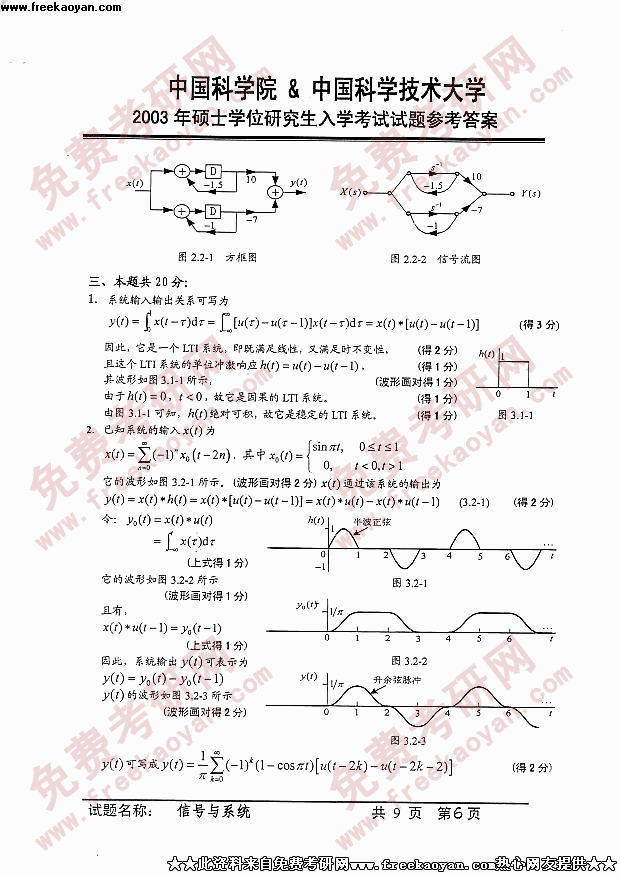 中国科学技术大学2003年半岛在线注册真题-信号与系统答案