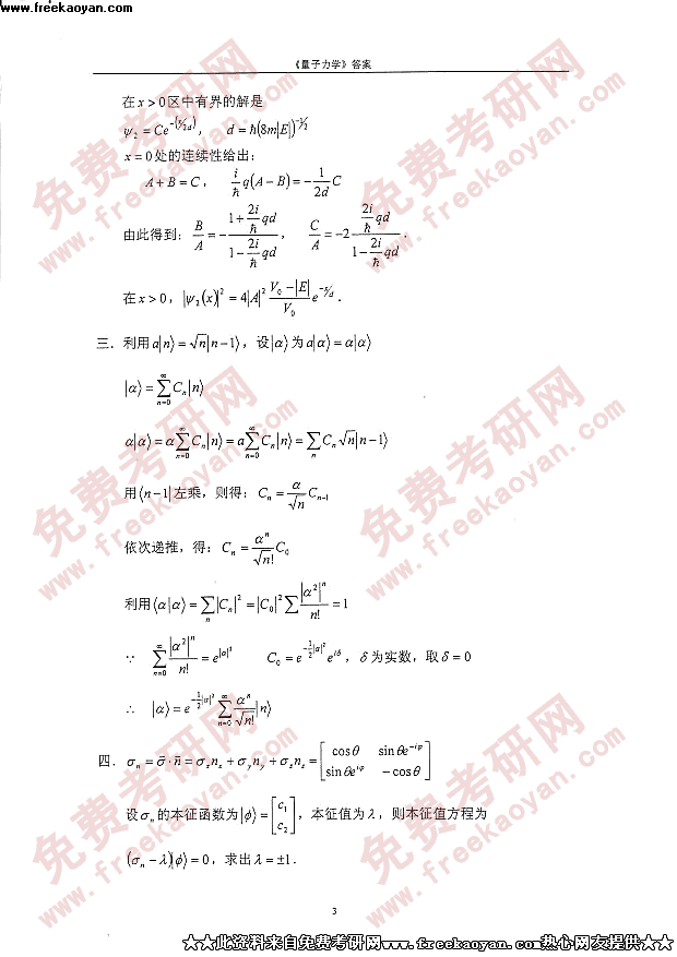 中国科学技术大学2003年半岛在线注册真题-量子力学答案
