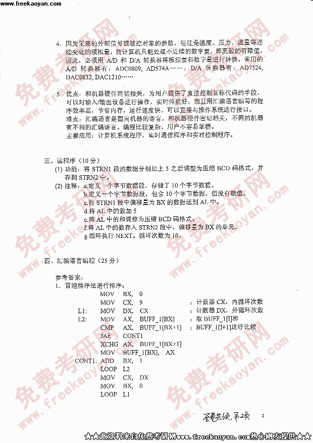 中国科学技术大学2003年半岛在线注册真题-微机原理答案