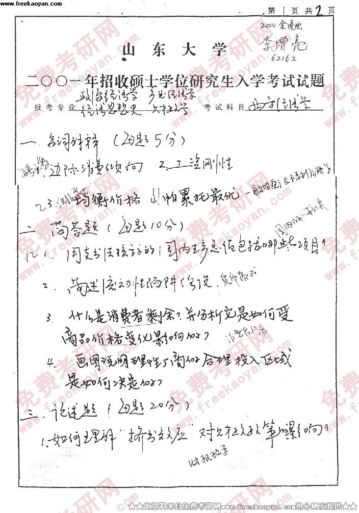 专业课半岛在线注册经验 本站小编 FreeKaoyan 2018-01-22山 东 大 学二00一 年招收硕士学位研究生入学考试试题报考专业 民商法 考试科目 民法学全套(满分100分)一.名词解释(均需举例说明,每小题4分,共20分)1.请求权竟台2.债权的平等性3.物权法定原则4.让与担保5.亲等二.回答问题(1~3题必答,4~5题任选其一,共50分)1、简述相邻用水关 ...