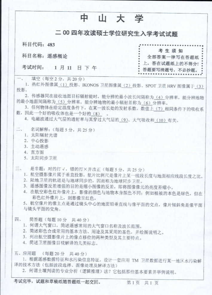 相关话题/半岛在线注册真题 遥感 中山大学 概论