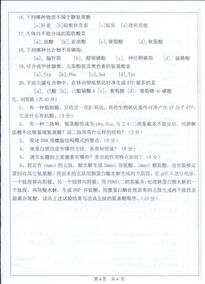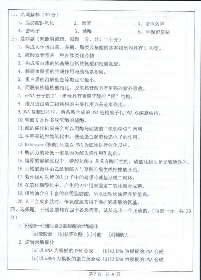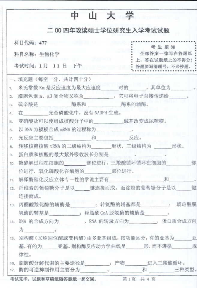 中山大学2004年半岛在线注册真题-生物化学