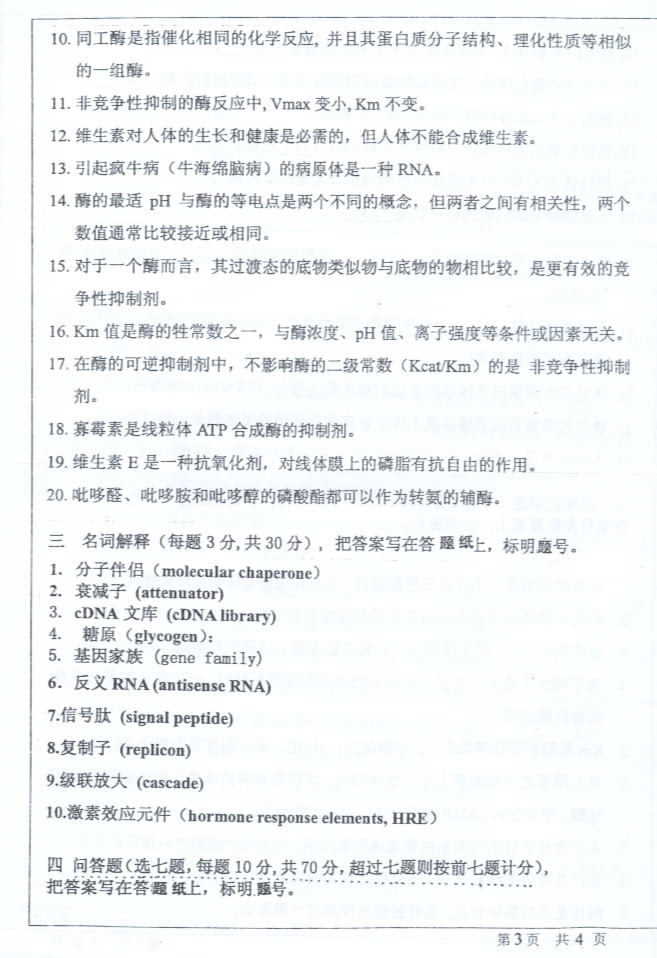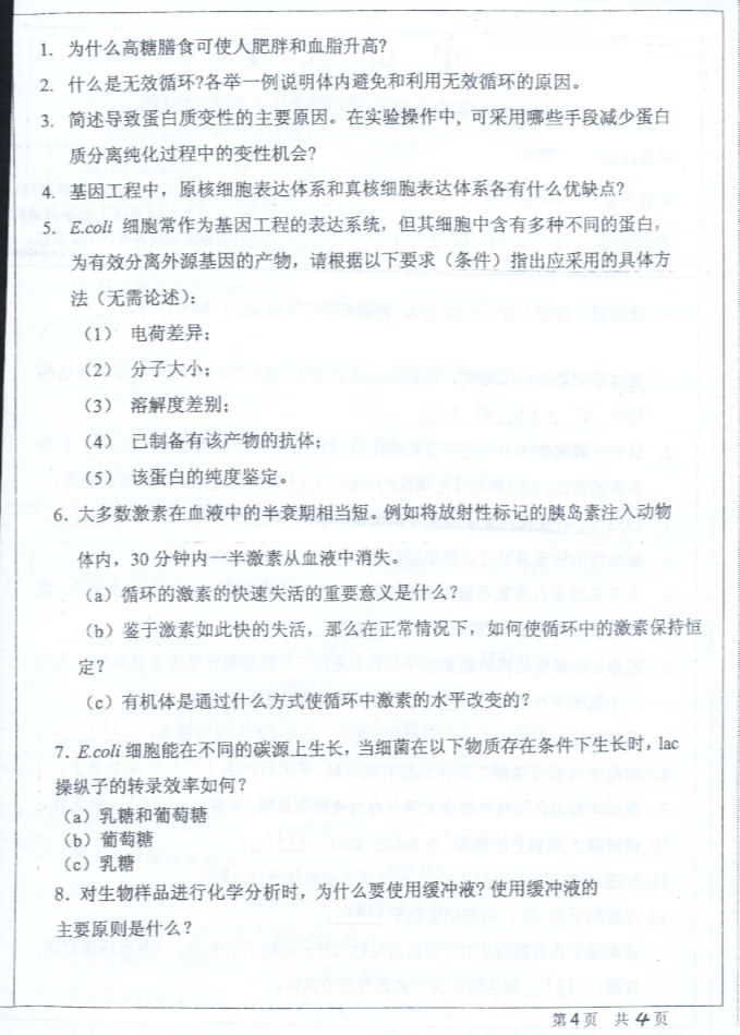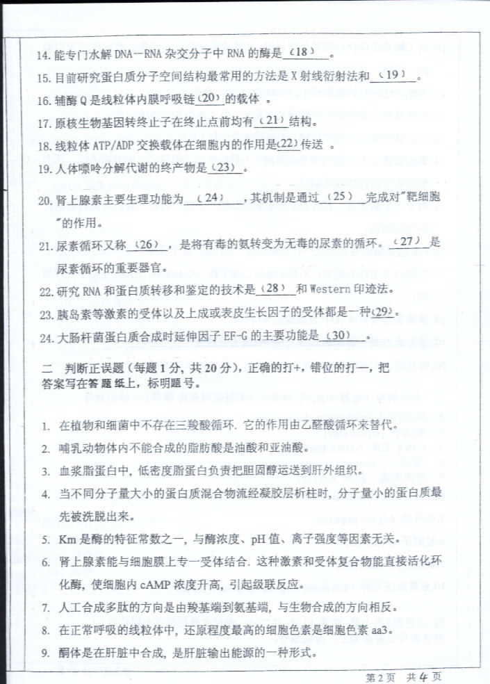 中山大学2004年半岛在线注册真题-生物化学二