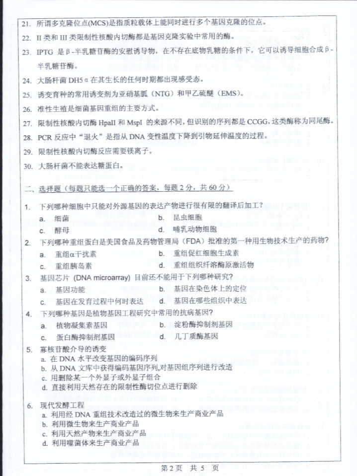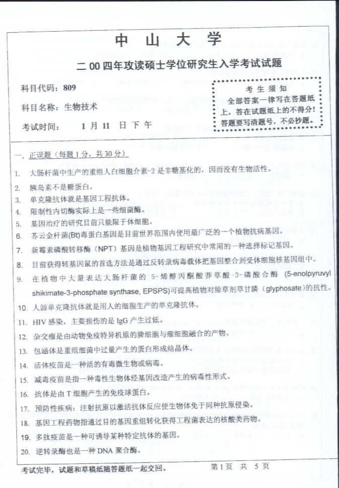 中山大学2004年半岛在线注册真题-生物技术